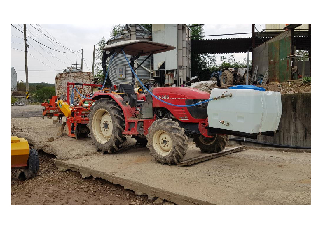 | Herbicide Tank separated (Tractor 60HP, Tank capacity : 400L) Even in slightly wet soil, it excels in forming ridges and applying plastic mulch. Tank attachment method (Choose one) 1) tractor loader attachment 2) tractor balance weight attachment |